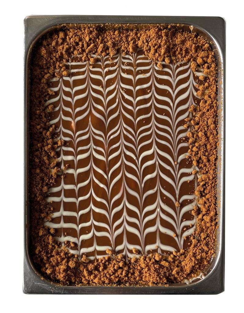 Un gelato goloso che richiama i sapori dell’infanzia. Cremosità e un tocco croccante si abbinano per deliziare il palato. La vasca si compone di un primo strato di uno speciale fiordilatte e un secondo strato di crema mou.